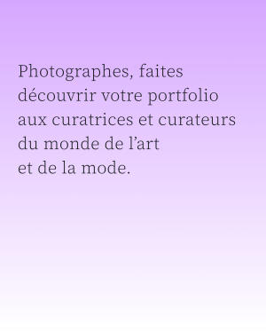 Une sélection curatoriale de portfolios, des rencontres entre photographes et experts à la vision art ou mode.