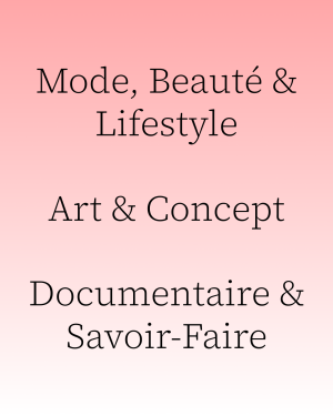 mode / beauté / lifestyle — art / concept (notamment édition) — savoir-faire / documentaire.